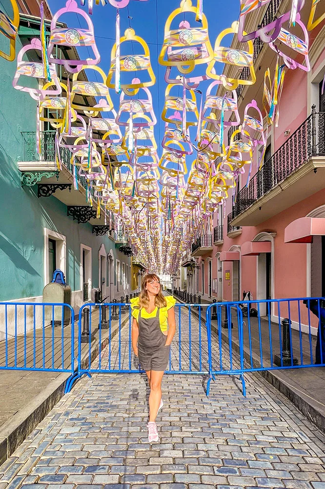 After a little bit of history, head to Fortaleza Street, Old San Juan’s most instagrammable street. This street is often covered with a canopy of colourful umbrellas, like Pasaj Victoria in Bucharest. However there were other motifs while I was there related to a charity event. It was still beautiful and super photogenic!